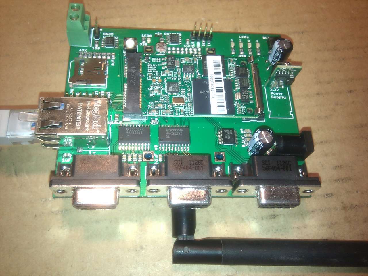 And with the Netburner module plugged into the mini PCI-express slot on top and the radio module connected on the bottom (only the antenna is visible).