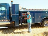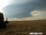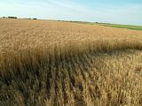 This morning it was about 65 degrees with a light breeze. Awesome weather. This afternoon it was more like 90 degrees with a 25 MPH wind. We unloaded all the equipment this morning and hooked up the trucks to the correct trailers. Someone sampled the wheat and it was 15.5% so we will wait another day. This town is just filled with other harvesters. Mostly John Deere and New Holland, but we did see a Massey drive through town.