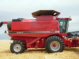 Both yesterday and this morning we cut some wheat that was almost flat from high winds. The pickup reels work great for standing it up to be cut. It does take a while though as we can only travel 2 MPH or less. We finally got done with that and started on some ground that had standing water in places. I got too close with my combine and sank into some soft ground. The rear wheel assist helped a lot, but unfortunately not enough to get me out. Lesson learned - never back up when in mud. Later in the day we had some light rain that shut us down early.