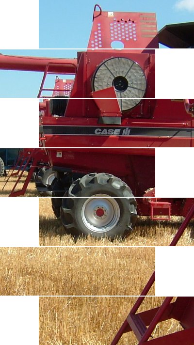 Day 1 - July 16, 2005 - Arrival, finished the winter wheat Day 2 - July 17, 2005 - Started on spring wheat Day 3 - July 18, 2005 - Maintenance, sampled the spring wheat Day 4 - July 19, 2005 - Wash trucks, visit Pierre Day 5 - July 20, 2005 - Cut spring wheat Day 6 - July 21, 2005 - Cut spring wheat Day 7 - July 22, 2005 - Cut spring wheat Day 8 - July 23, 2005 - Ran a 36' MacDon, more spring wheat Day 9 - July 24, 2005 - Departure, road trip home. |