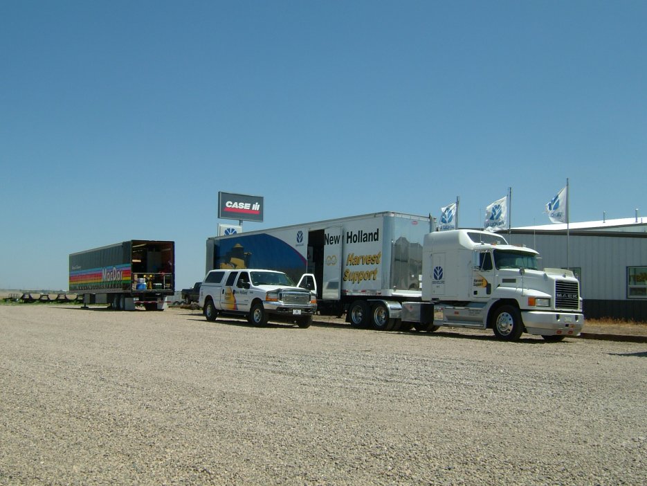 Brent and Tyler took off early this morning to take #9 truck up to a Kenworth dealer in Bismarck, ND. The front drive axle has a bushing out and it moved fore/aft about an inch. We're told it will take only 6 hours to fix at the dealer. While they are up there, they will be going over to Regent to check the wheat there and see how far off it is since that is the next stop.