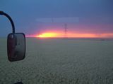 We are now back at the trailers. We started cutting about 10:30 AM this morning and have covered a lot of acres with only 5 machines. Machine #5 is still broken as we can't seem to get the right parts for the hydrostat. Brent made a few phone calls today and got a complete one located in Nebraska somewhere. It should arrive tonight and will be installed tomorrow morning.