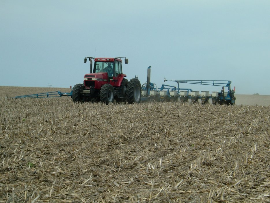 We about 1/3 of way done planting the soybeans. Most of what we have left is no-till, so we are almost done with the great plains field finisher. We replaced 15 of the shovels on it this morning. It is no surprise that they wear out when they are 2 inches deep and hitting countless rocks at 8.5 MPH for hours on end. As for the planter, well, no news is good news. It just keeps moving and knocking off acres. Rain is in the forecast, so we'll probably be shut down for part of this week.