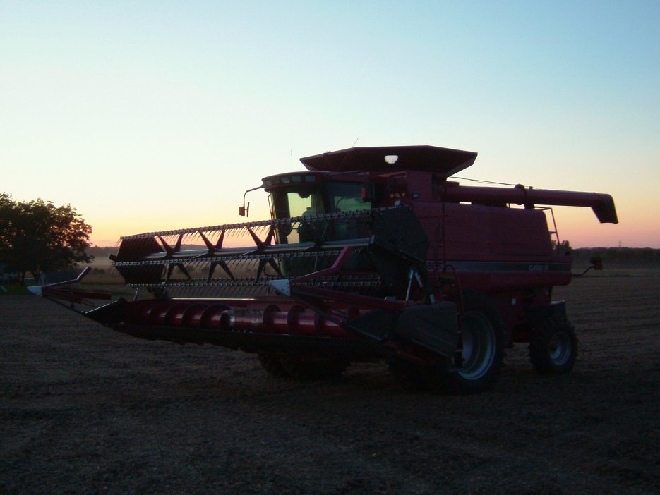 Nobody in our area has even tried corn, and we don't plan to touch it for another two weeks. Yesterday and today were both rainy and overcast, so we aren't gaining anything on moisture. Our earliest soybeans are still probably 3 weeks off. All the leaves on them have turned yellow, but only about half of the leaves have fallen off so far. We have other soybean fields that are completely green yet. Those are going to take a while to mature.