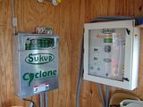 We finally finished up the floor today. That took long enough. The grain drier stopped on us yesterday. Today we discovered a fuse that blew, which was because of a faulty solenoid for the LP gas on the middle burner. We borrowed a solenoid off the bottom burner and we are cooking again. This is a 3-fan system. We use the top two for heat to dry the corn, then the bottom fan for cooling the corn back down.