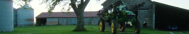 The pictures of the soybeans here are the last soybeans we planted. They're about 3-4 inches tall right now. The panorama pictures is what it looks like out my kitchen window tonight. It hasn't rained in a few days, so the sprayer has been running pretty steady, and should finish up spraying corn tomorrow.