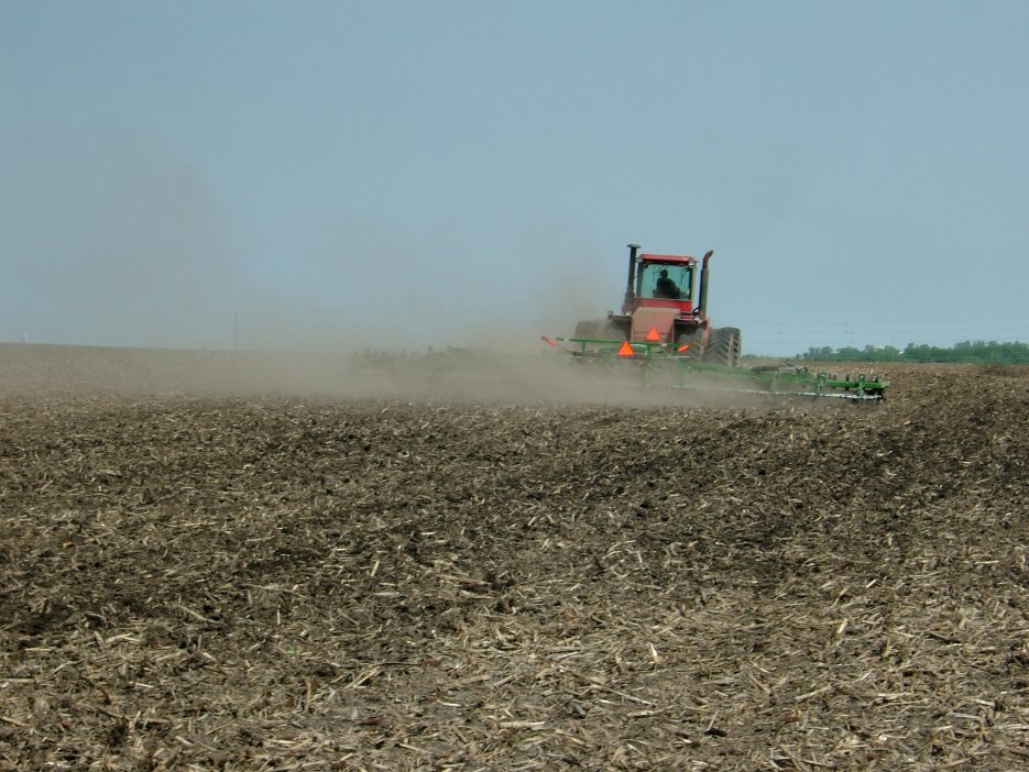 More soybeans today. I ended up running the 9180 (aka "Big Red" for a while, which proved to be interesting since the A/C compressor was dying, and then it quit completely. Even on a relatively cool day, that cab gets pretty warm. The field I was in didn't till up well last time, so the ride was pretty rough this time, plus there was still a lot of moisture just under the surface, so it was pulling really hard today.