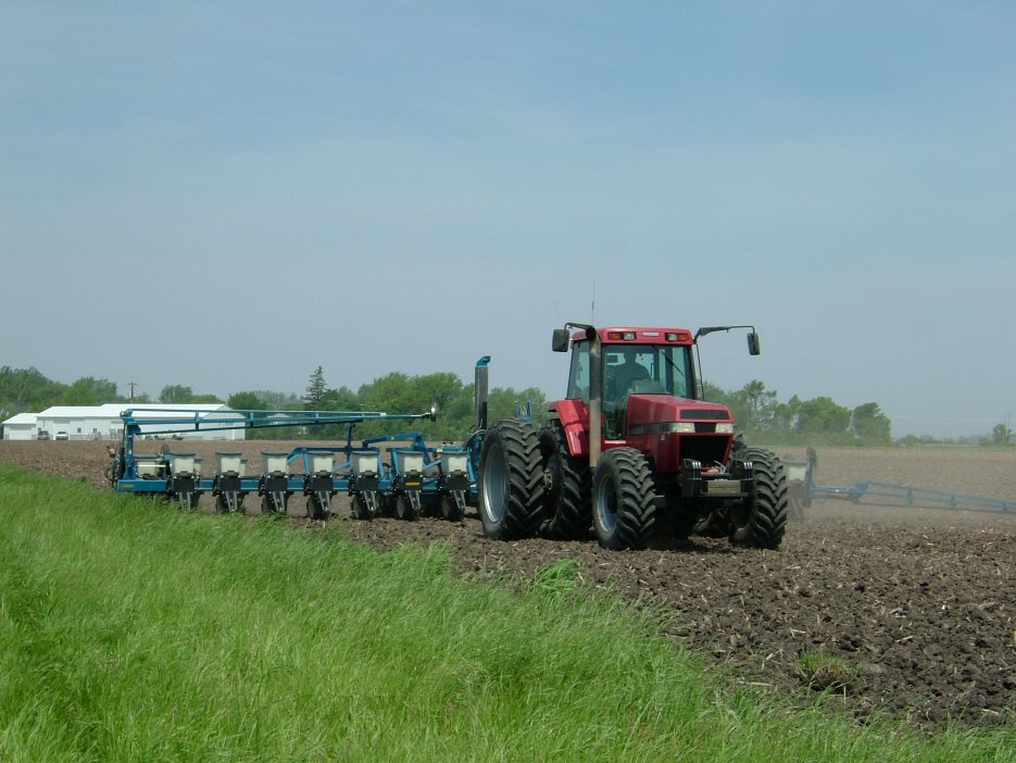 Today we finished planting soybeans. There is a little sweet corn we'd like to plant yet, but aside from that and barring any need to replant anything, we're done. It's a feeling of relief to know that it can rain and we won't be too late on a field. At this point, we still don't want to see much rain for a while. There is enough moisture in the ground to germinate the seeds, and by being a little dry it will force the plants to put on some deep roots. Effectively that helps the crops survive if it were to turn dry later in the summer. A wet spring causes the root system to be lazy, and will damage a crop faster in the event of a drought. We have also seen just a little bit of crusting in a few fields. It isn't terrible, but is present. "Crusting" is when the top one inch of soil becomes hard and the germinated seeds can't break through it. In short, it is caused by a hard rain followed by heat, but only in certain soil types does it become a problem.