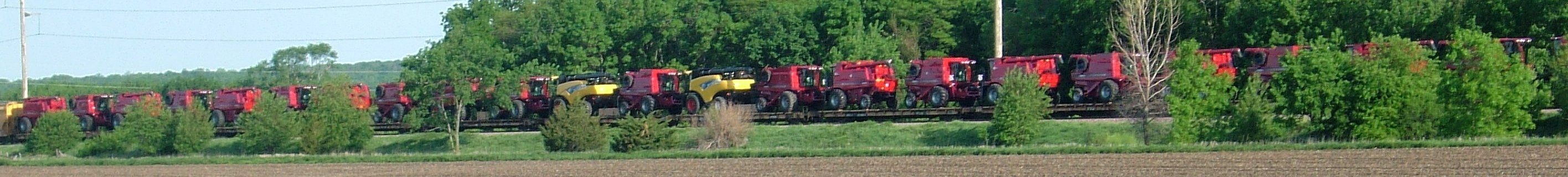 Back into the fields this afternoon. Also hauling some grain today too. I was at my desk job pretty much all day today, so I didn't really get in on any of the action. I did happen to see an interesting train this morning though. I've never seen combines on a train before, other than in pictures. It appears to be a load of mostly 2577s and 2588s, with a few NH machines mixed in. I wasn't able to get close enough to see model numbers though. These were on the UP double main line in Fairfax, Iowa. They would be coming from Grand Island, NE, and are probably headed for the port of Baltimore for export if I was to guess a destination.