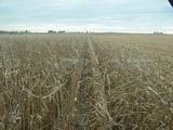 Today I was working in a field that had been partially flooded earlier this year, and still had standing water in a few places from some rain a couple weeks ago. There seemed to be a good base to the ground, since I wasn't cutting ruts, nor did I even come close to getting the machine stuck. Still, steering in mud can get a little interesting. If you've never driven a combine in mud, they like to slide sideways sometimes, and with the corn head on the opposite end from the steering axle, trying to compensate for the sideways drift can be a challenge in certain conditions.