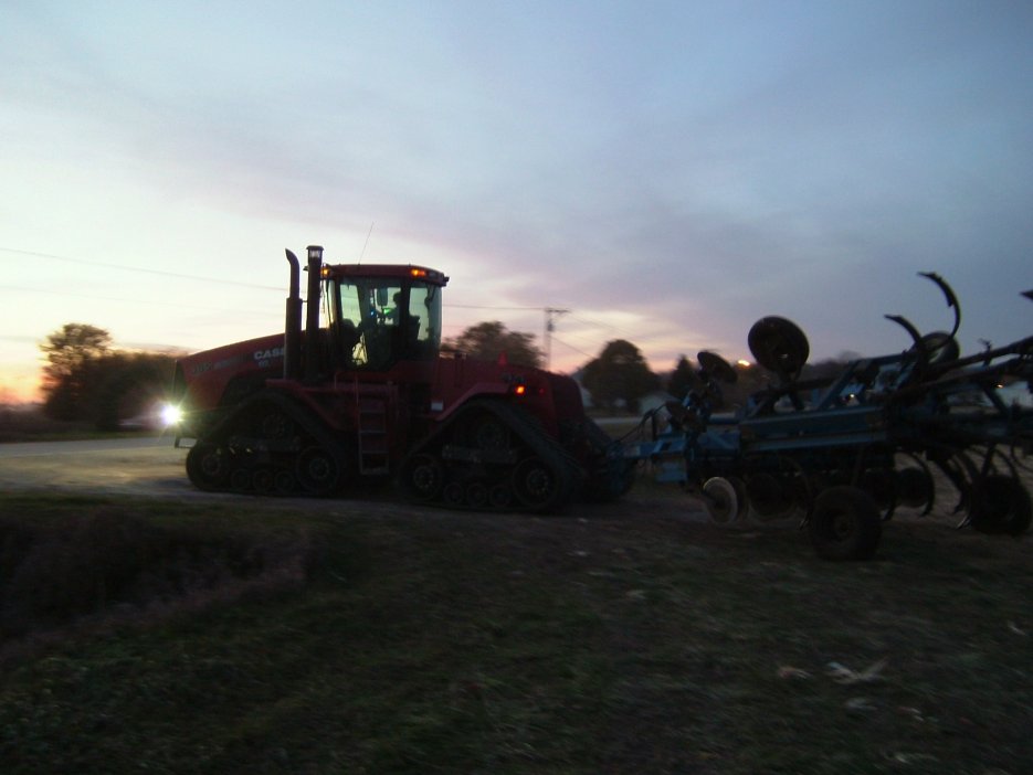 The corn heads and combines were put away for the year. The last wagons were dumped, their floors painted, and then put in sheds as well. We paint the wear points on the gravity box wagons to prevent rust, so that next year, the grain will slide out of them nicely. The chisel plowing was also finished up in the early hours this morning, and the quad trac is now out putting anhydrous on all the ground that will grow corn next year.