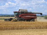 As you can see I changed the color!!! No, just a joke! Our 8010 had so much work in another area that I got help from a custom cutter from Styria, Franz Trummer, to get in my crops. Both combines did a good job, but had problems keeping up to the capacity we’re used to from the 8010. Yields are around 60 to 70 bu/ac, which is about 40% less than in a normal year. Test weight is perfect, and the prices are going up. I stored every kernel in the bins and "wait and see"!