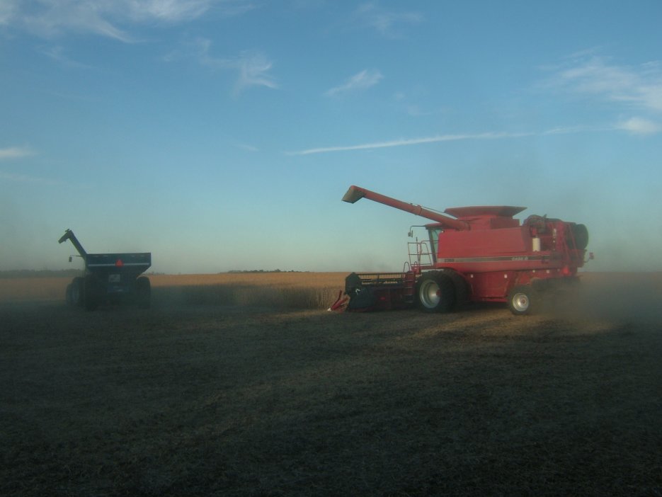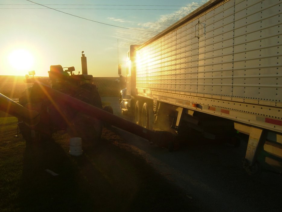 We had some light rain a couple days ago, and we just got back into the soybeans late this afternoon. The temperature has been cooler, and the dew set in real early tonight. Probably only got 40 acres done, but that is still better than nothing.