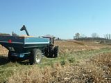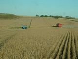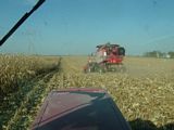 Picked corn again yesterday and today. The ground is pretty soft, so the tractors are doing some 23 degree tillage pulling wagons out of the fields. The last of the soybeans were finished up today. The wind was really strong today, so we have a lot of broke-over corn stalks now, meaning some yield loss. Moisture is still higher than we would like, and the air temperature is just above freezing. It's also snowing right now.