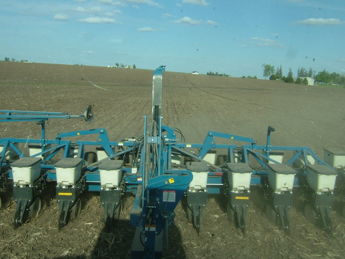 We got a late start today because there was fog and a heavy dew overnight. Then we got rained out late this afternoon, and it really rained hard. Although the rain forced us to quit planting, it was nice to see. It will help some of the corn break through the surface. There was a bit of crusting on some fields, and this rain will fix that.