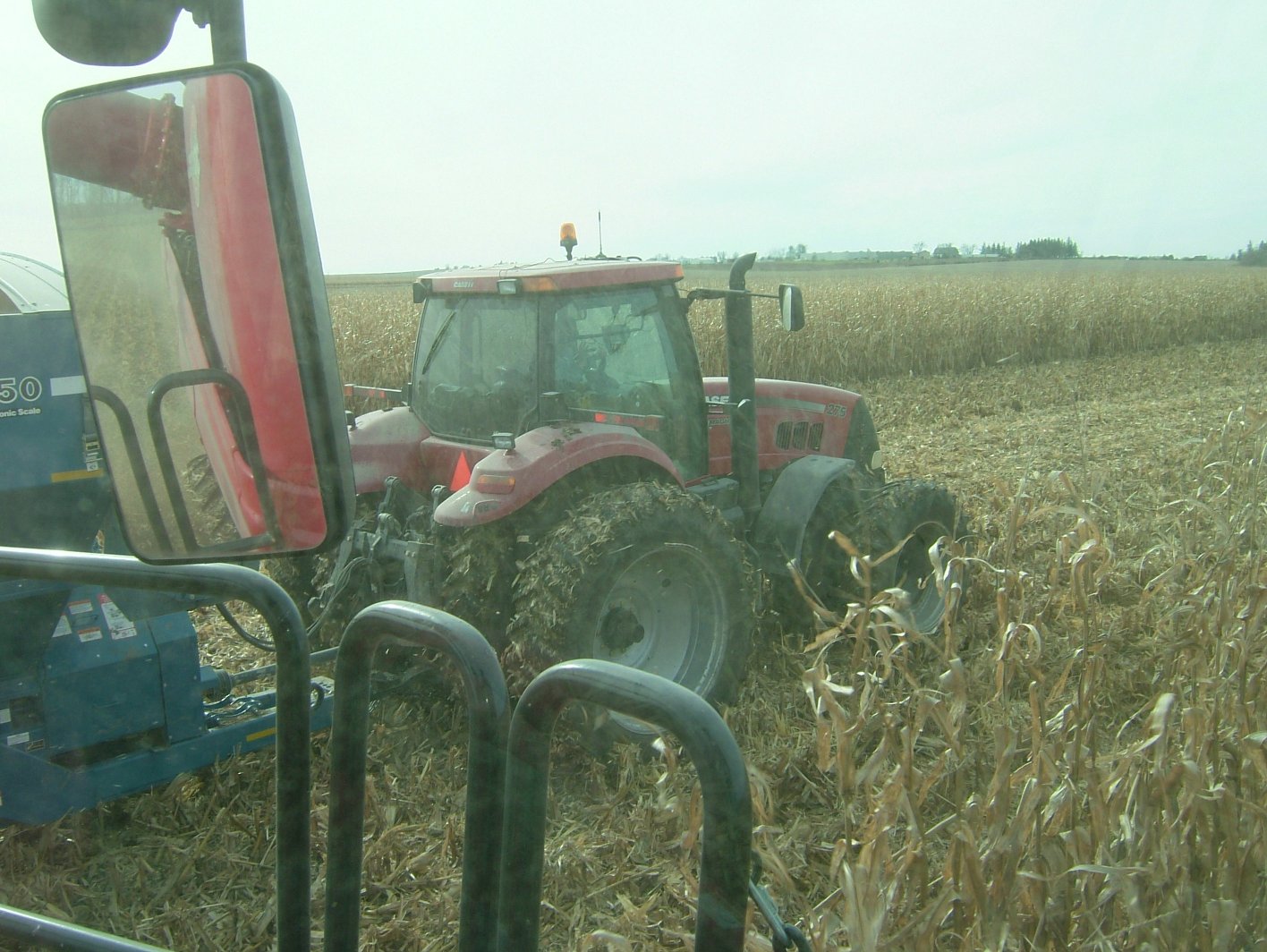 Combines are cleaned up and the wagons are put away. We didn't get much rain since we finished harvest, but it was enough to make things muddy again. We've been chopping corn stalks and chisel plowing the stubble for the past few days. Initially we started running at night after the frost had set in a bit, but the ground is now dry enough that we can run during the day. We're nearly done with the tillage.