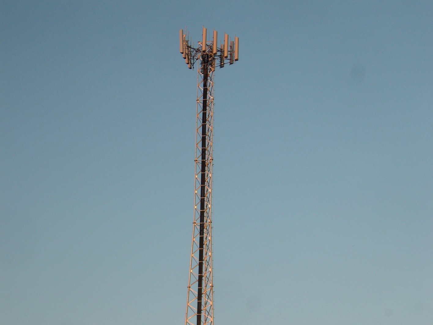 The new Verizon cell tower is pretty much complete. The antennas on the tower connect to the building via some pretty massive coaxial cables.