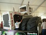 Farm Progress Show. Case has a new big tractor, Hagie has a new sprayer, and Firestone tires on a NH don't leave much clearance between the tire and the fender. Deere has electronic steering and a video game to show you how it works. Big bud is big, a header trailer can load and unload heads by itself. Gleaner has a black combine, and there are some new electronics released.