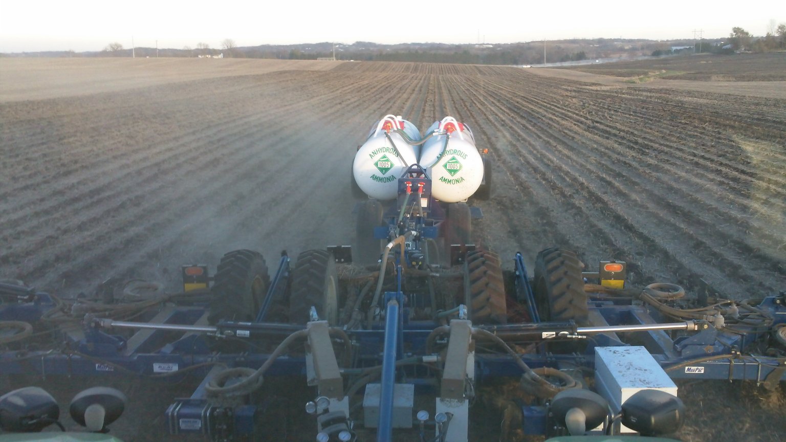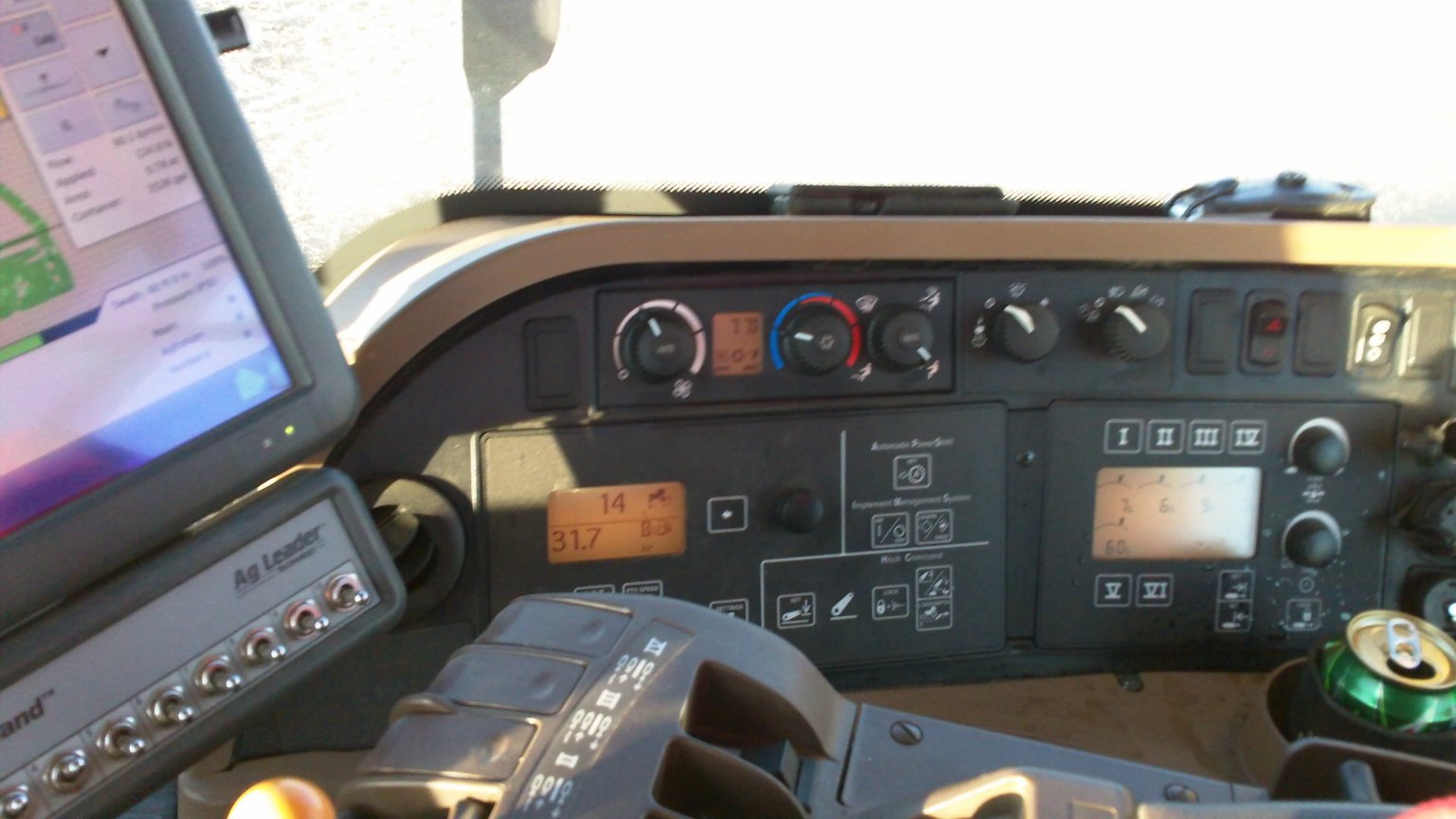 There is a John Deere 9630 in the neighborhood that is pulling a 24 knife bar. The setup is drawing attention online and in person. Today it was running near my house, so I had to take a closer look. The tractor has a GS2 display for auto-steer with a SF3000 on the roof running SF2. There is also an Integra in the cab to manage section control (the bar has 4 sections) as well as rate control for the NH3 and N-Serve, plus the associated application logging and coverage maps. There are also some cameras on the machine, one under the front axle to make sure the N-Serve tank bung doesn't get busted off when driving through a deep waterway, and another on the back of the bar to assist with hooking up to full tanks.