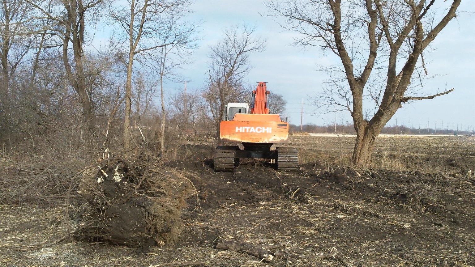 The ground isn't frozen yet, so it is a good opportunity to clean up some trees along a stream. With a big excavator, it goes pretty quick.