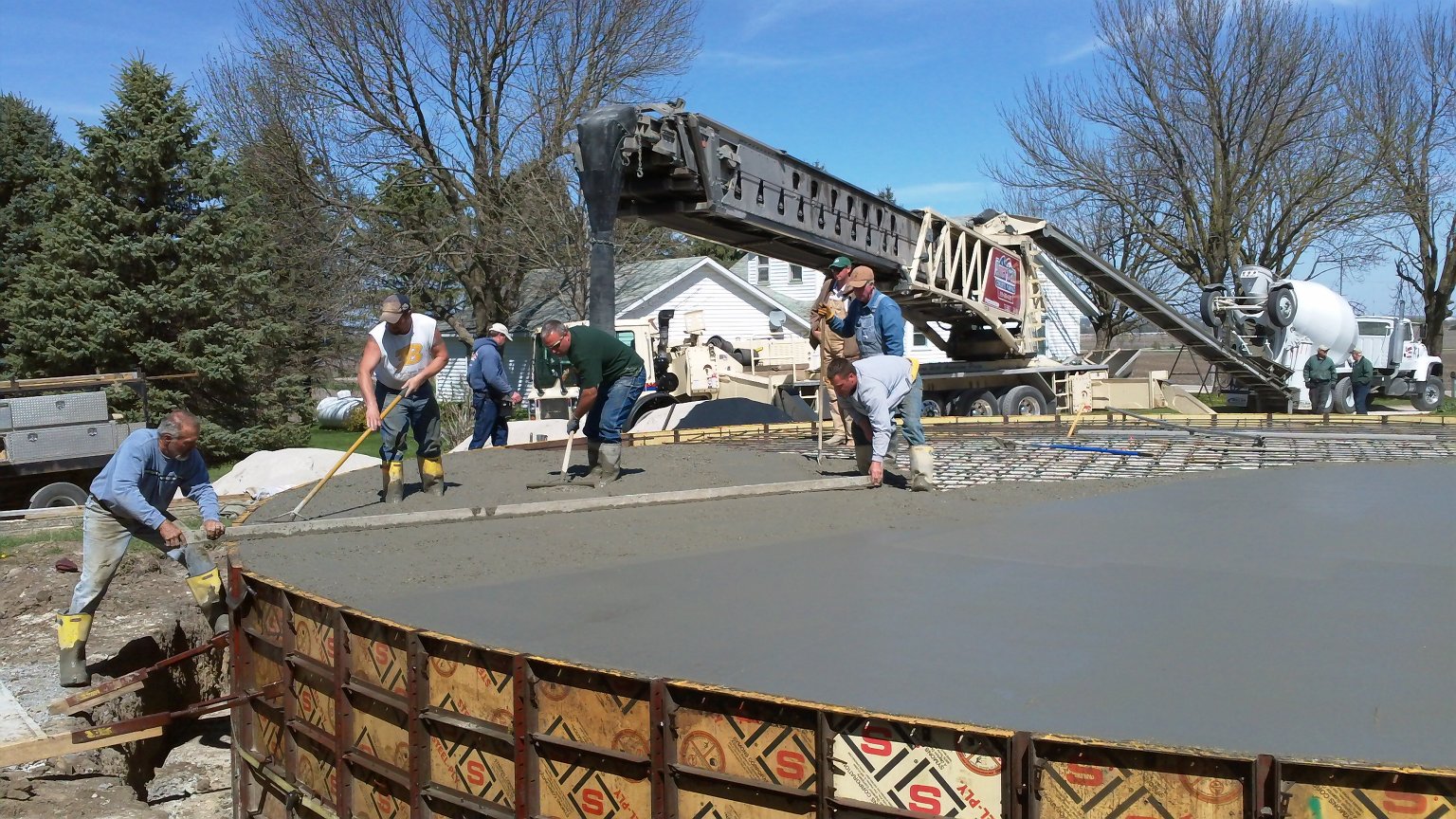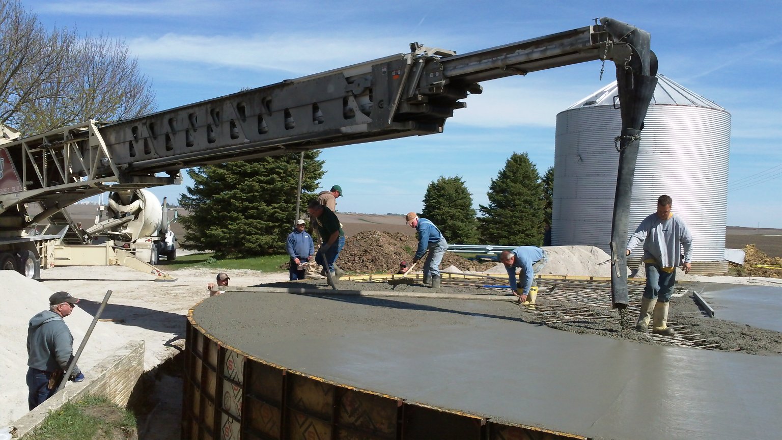 Packed fill inside the second bin, wired up the rebar, and poured the cement. This will be the wet holding bin, which means it will have a hopper bottom. All the weight will be on legs around the outside edge, so the pad in the center doesn't have to be that thick.