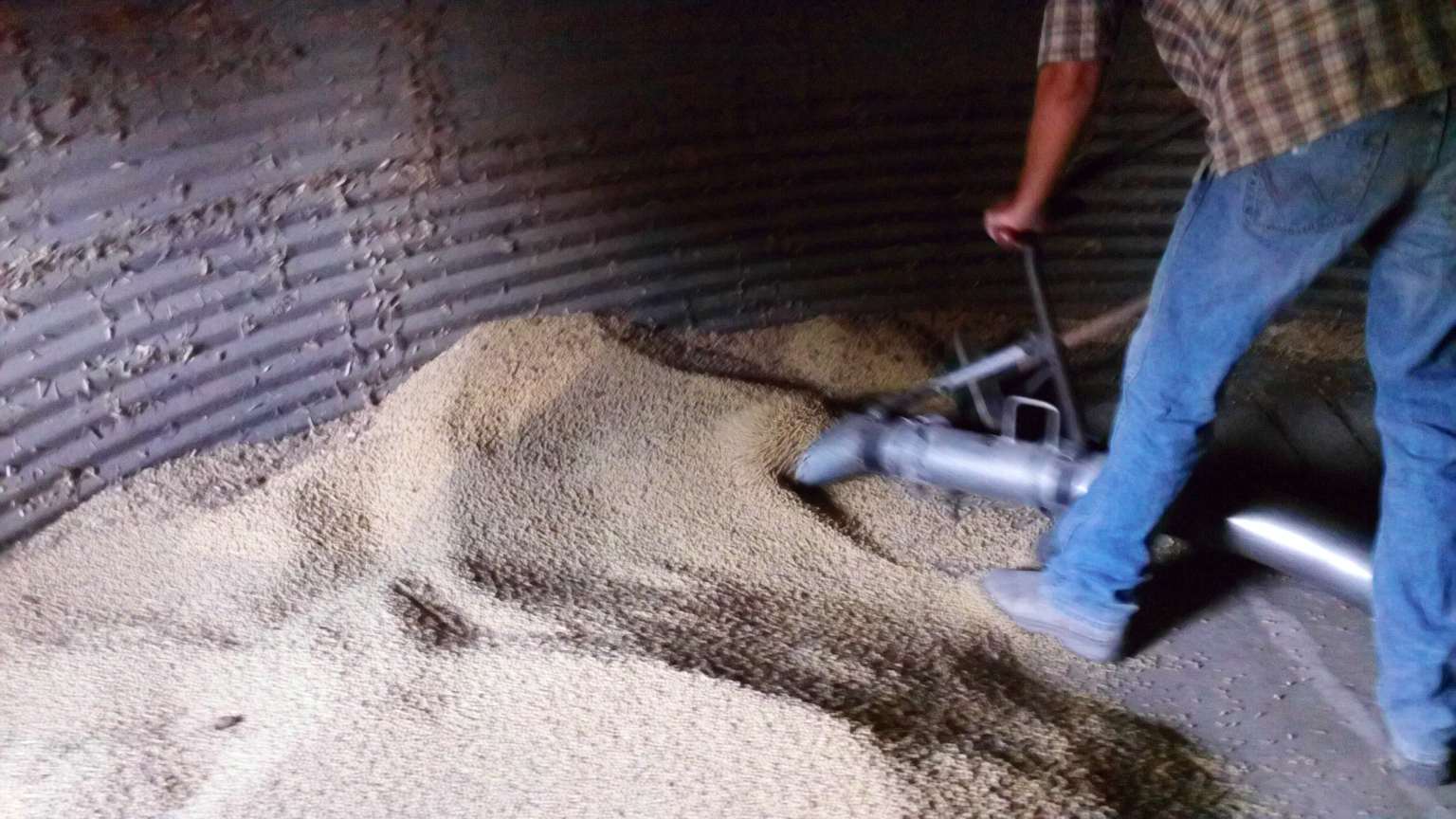 Cleaned out two grain bins with a grain vac. This has to be a morning project because it would be way too hot in a bin after noon.
