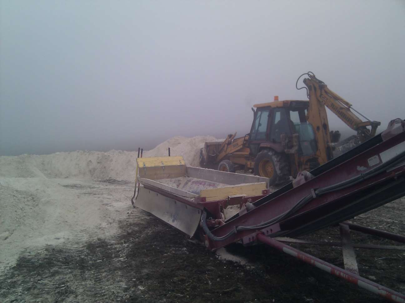 Spreading lime. This stuff was originally used for filtration at a clean water treatment plant. As we are located near the second largest metro area in Iowa, there is a lot of this stuff around. It was dumped here a year ago and had the consistency of peanut butter. It has dried just enough to flow through a spreader box.