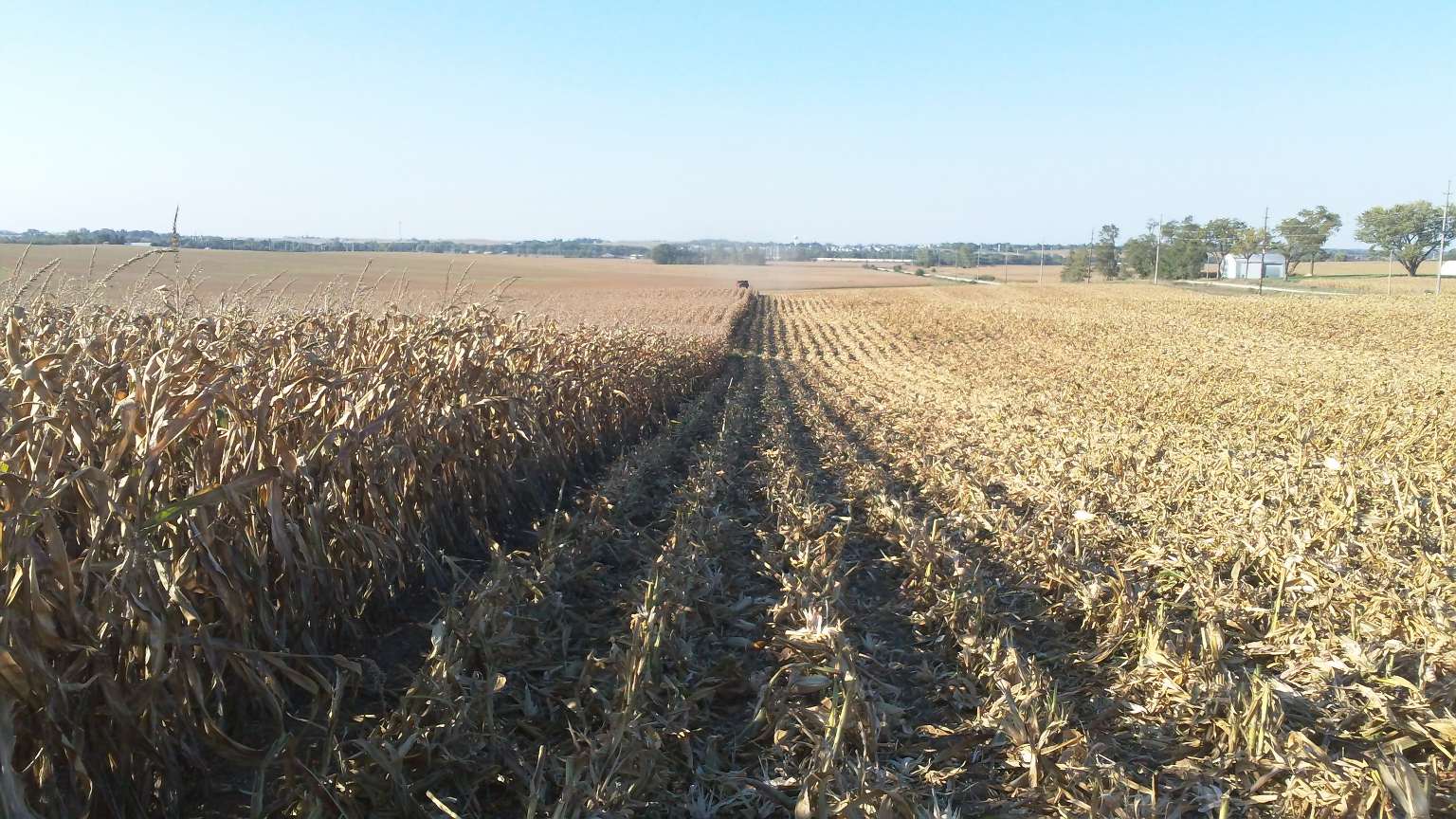 After moving the combines to a field 10 miles from where we had been, we found the soybeans to be a bit too green yet. We switched one machine back to corn and the other is going to sit.