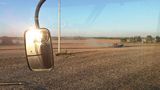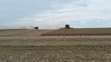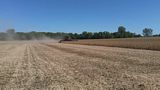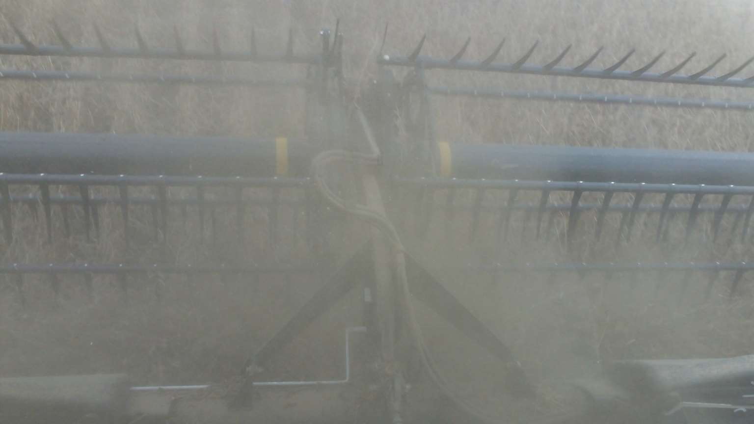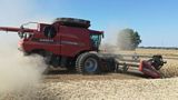 The wind was just slightly faster than the speed of the combine, so if you were going with the wind, visibility was bad. After running blind for a while, it's nice to cut a field a different direction so the dust is blown sideways. Still taking a lot of power to thresh, but the beans are running 11-12% mositure.