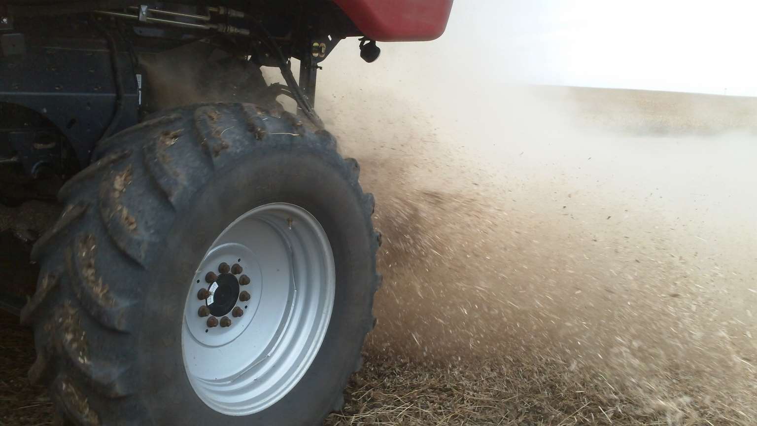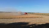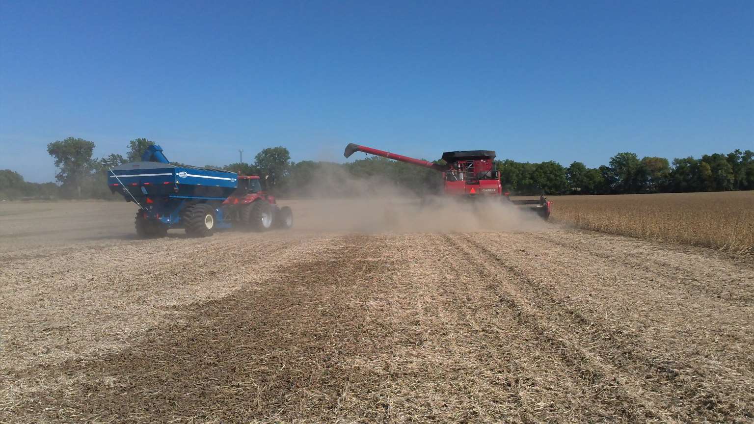 Harvest has started. There are still a lot of green stems in the soybeans, but the pods are dry, and there is dust to stir up.