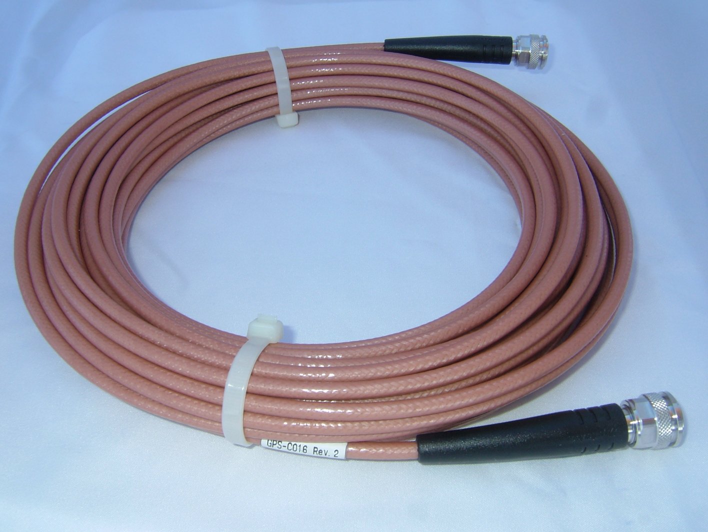 The GPS-C016 antenna cable is designed for connecting an antenna to a NovAtel ProPak, FlexPak-G2, or FlexPak6 receiver. It is 15 meters (~45 feet) long, made from MIL-C-17/60-RG142 coax, and has straight TNC male plug connectors.
