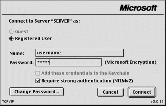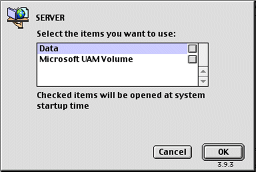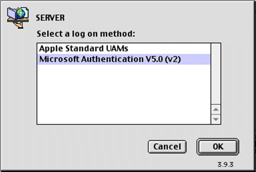 Now on a Mac, open the chooser and select your windows file server. These examples are from an OS9 Mac: