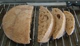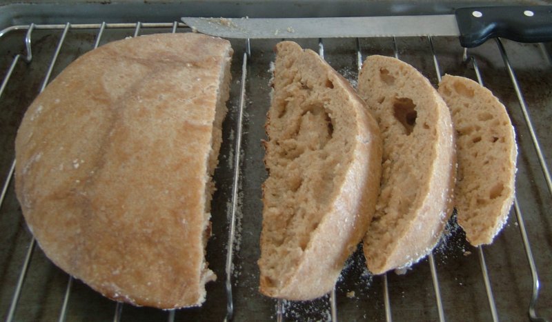 When finished baking, remove loaf from dutch oven and cool on cooling rack. Wait 30 minutes before slicing.